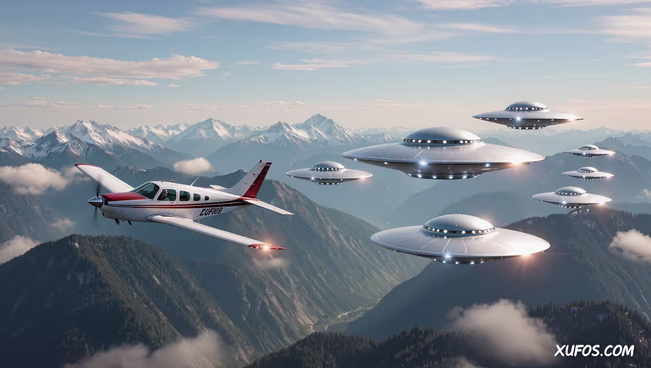 June 24, 1947. Skies clear over the Cascade Mountains, Washington. Experienced private pilot and Boise businessman Kenneth Arnold, flying his CallAir A-2 at about 9,200 feet while searching for a missing U.S. Marine C-46 transport plane, spotted nine bright, metallic, tailless objects in a chain formation. They flashed like mirrors, moved in a stepped echelon, weaved between peaks, and covered roughly 47 to 50 miles from Mount Rainier to Mount Adams in just 1 minute 42 seconds, yielding a calculated speed of 1,200 to 1,700 miles per hour.
