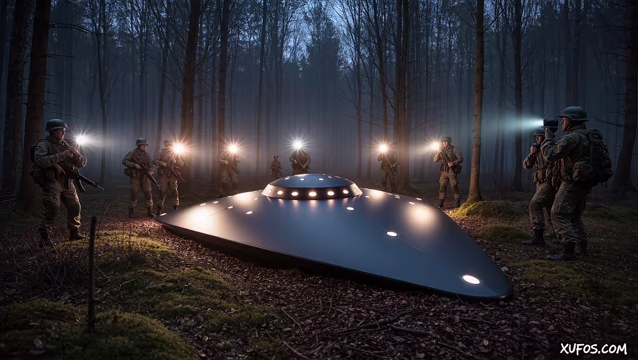 Late December 1980. Rendlesham Forest, Suffolk, UK, near twin USAF bases RAF Woodbridge and RAF Bentwaters (Cold War NATO assets). Over three nights (Dec 26, 28), US Air Force security personnel reported unexplained lights descending into the forest, a triangular metallic craft landing, physical traces (depressions, radiation), and close encounters. Key witnesses: Sgt Jim Penniston (touched craft, sketched symbols, later binary code claim), Airman John Burroughs (radiation exposure), Lt Col Charles Halt (deputy base commander; wrote memo, recorded audio tape).