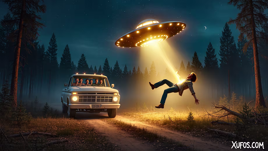 They stopped the truck. Everyone got out. The light was coming closer. It was no plane, no helicopter. It was a glowing object, disc-shaped, hovering just above the treetops. Travis Walton jumped down from the truck bed and started walking toward it. The others yelled at him to come back. He kept going. He wanted to see it up close.