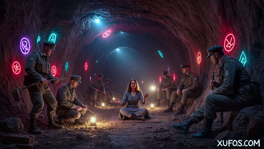 According to the soldiers, engineers, and psychics involved, the deeper they dug, the more unusual the findings became. They reportedly discovered smooth, artificially constructed tunnels that appeared to be made of a material unlike natural rock. On the walls were strange hieroglyph-like markings and symbols that no one could identify. Some team members described encountering a large, perfectly flat slab or metallic door that seemed to seal off a deeper chamber.
